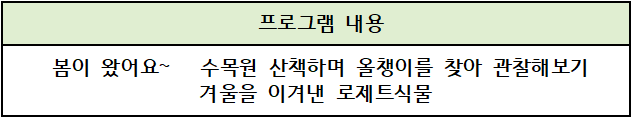 풀이랑 꽃이랑 나무의 기분 좋은 만남을 통해 이루어지는 자연스러운 의사소통으로 가족 간의 즐거운 추억을 만들어 가는 시간