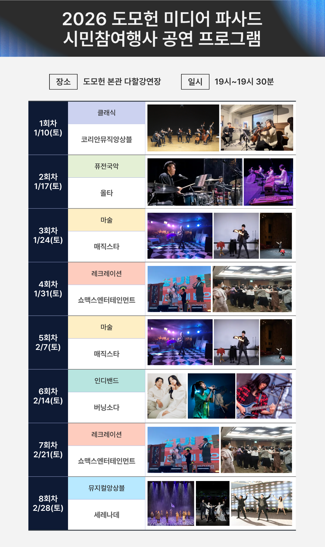 ❍ 기 간 : ‘26. 1. 10. ~ 2. 28. 매주 토요일, 총 8회