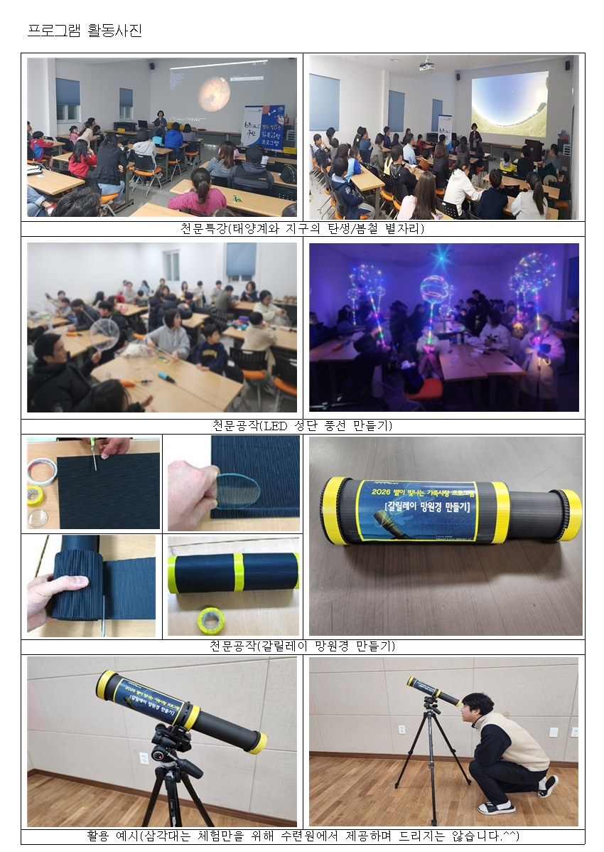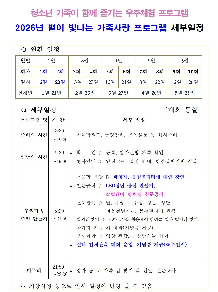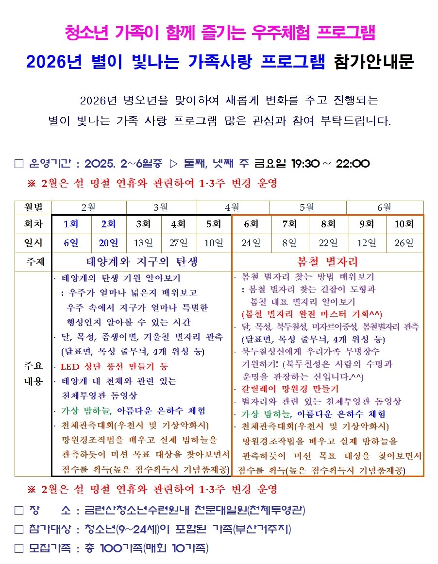 별과 우주를 주제로 가족이 참여하는 체험활동 프로그램