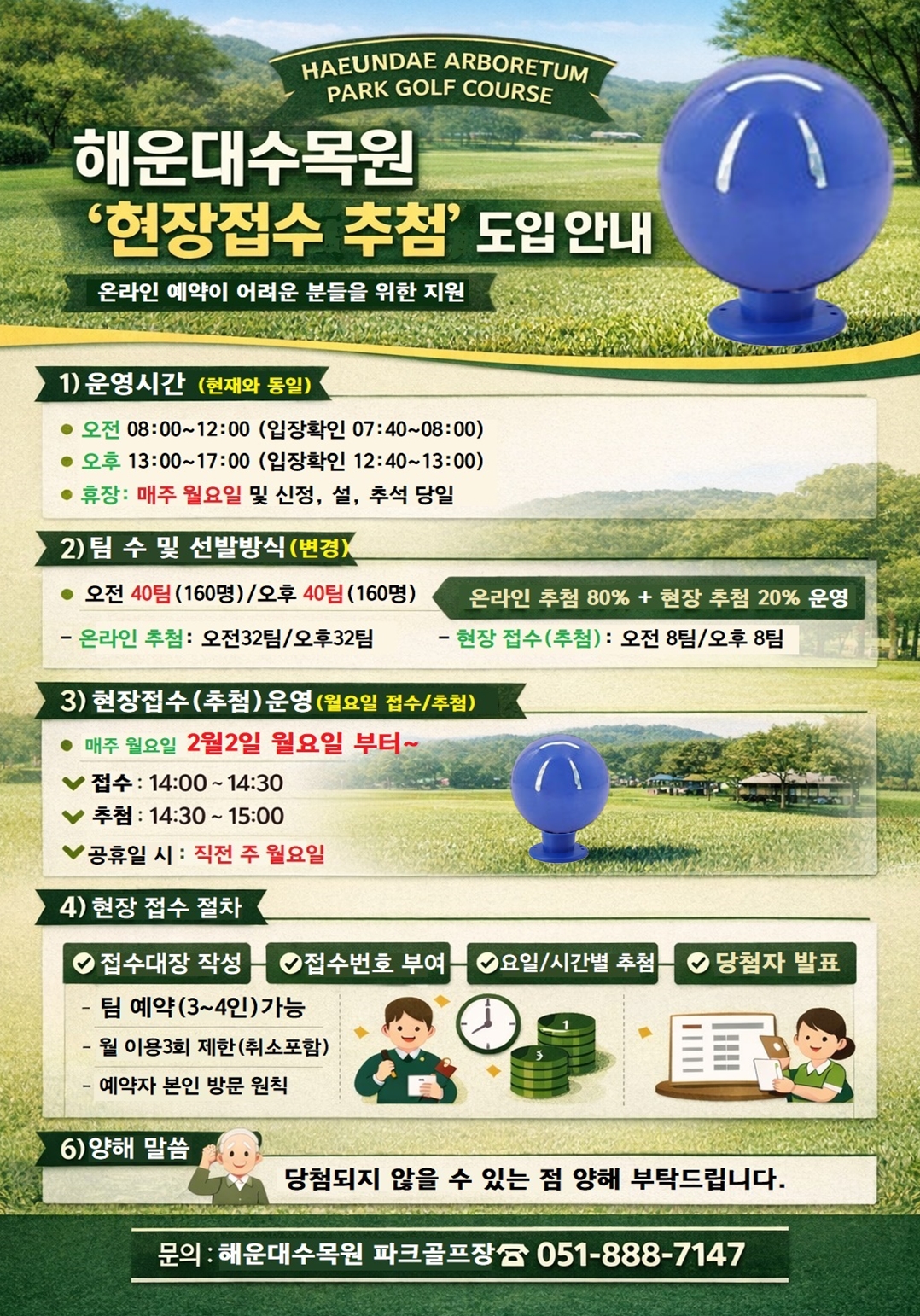 파크골프장 예약방식이 선착순에서 추첨제로 변경 됩니다.